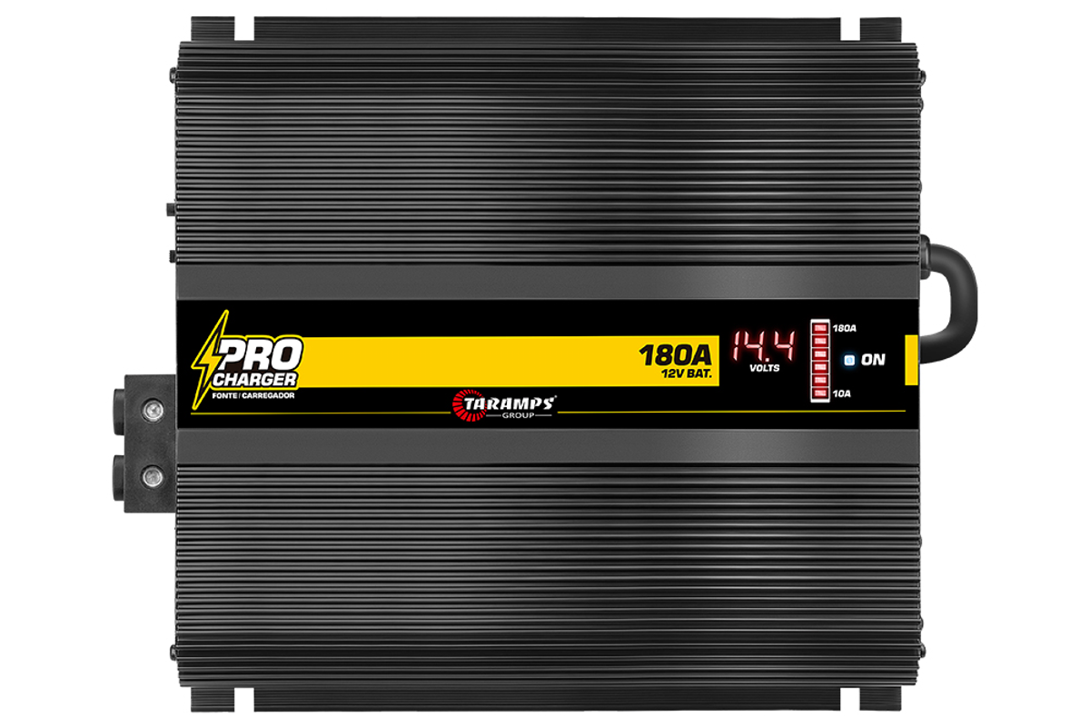 Dans le but d'apporter sécurité et qualité, le Groupe Taramps a développé le PRO CHARGER 180A, une source d'alimentation automobile en aluminium et au design moderne, qui permet une excellente dissipation thermique. C'est le plus sophistiqué et le plus efficace des convertisseurs d'énergie haute puissance pour recharger et alimenter les systèmes audio automobiles jusqu'à 180 ampères . Il a une gestion microcontrôlée de ses fonctions, un système SMART COOLER qui offre un faible niveau de bruit et une plus grande durabilité, il est bivolt automatique, a un voltmètre , une tension de sortie réglable de 12,4 à 14,5VDC et un contrôle du courant.L'énergie dont votre son automobile a besoin pour offrir des performances maximales.