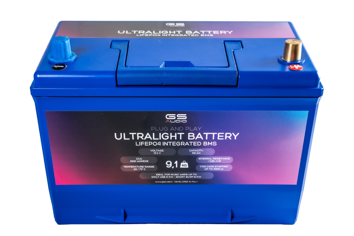 Batterie ultralégère 100Ah LifePo4 13,2V 9,1kg - Gs Audio - CCA:3800A