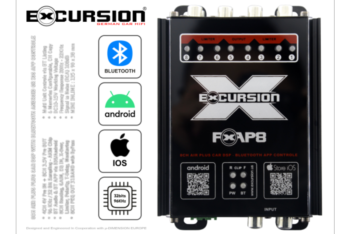 En plus d’un ratio de prix imbattable, l’approche pratique « FORM FOLLOW FUNCTION » est la philosophie et l’objectif auto-déclarés de EXCURSION. Car un « meilleur » est constamment remis en question et revient sur le banc d’essai. C’est ainsi que sont créés des amplificateurs de voiture à haute technologie SMD ou CHIP ultra-compacts. Systèmes de haut-parleurs uniques. Concepts modernes de plug & play qui fonctionnent de manière concluante de la connexion OEM au retour du haut-parleur et conservant ainsi une flexibilité énergétique totale. Gardez d’autres étapes d’extension ouvertes aux investissements et aux processeurs de flux de nos clients ou à la connexion BlueTooth avec des processeurs multicanaux numériques en option sans perte de la musique Smart Phone. Le pont entre Pure Audio et Digitalogy, cependant, évite les impasses coûteuses.
