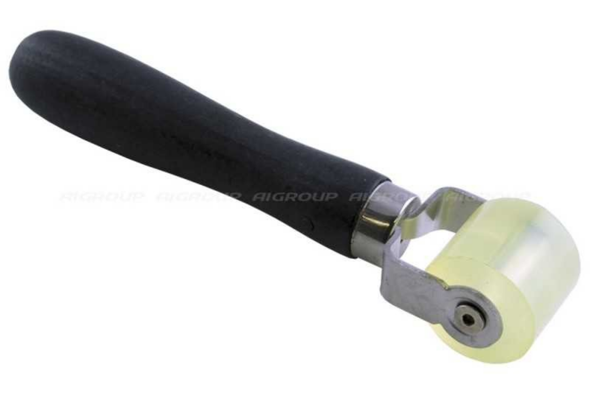 Outil professionnel pour l'installation de tapis amortisseurs. Vous pouvez facilement fixer un tapis amortisseur même dans des espaces restreints. Cet outil garantit que le tapis est solidement fixé à la surface et qu'il n'y a pas de poches d'air inutiles entre les matériaux.