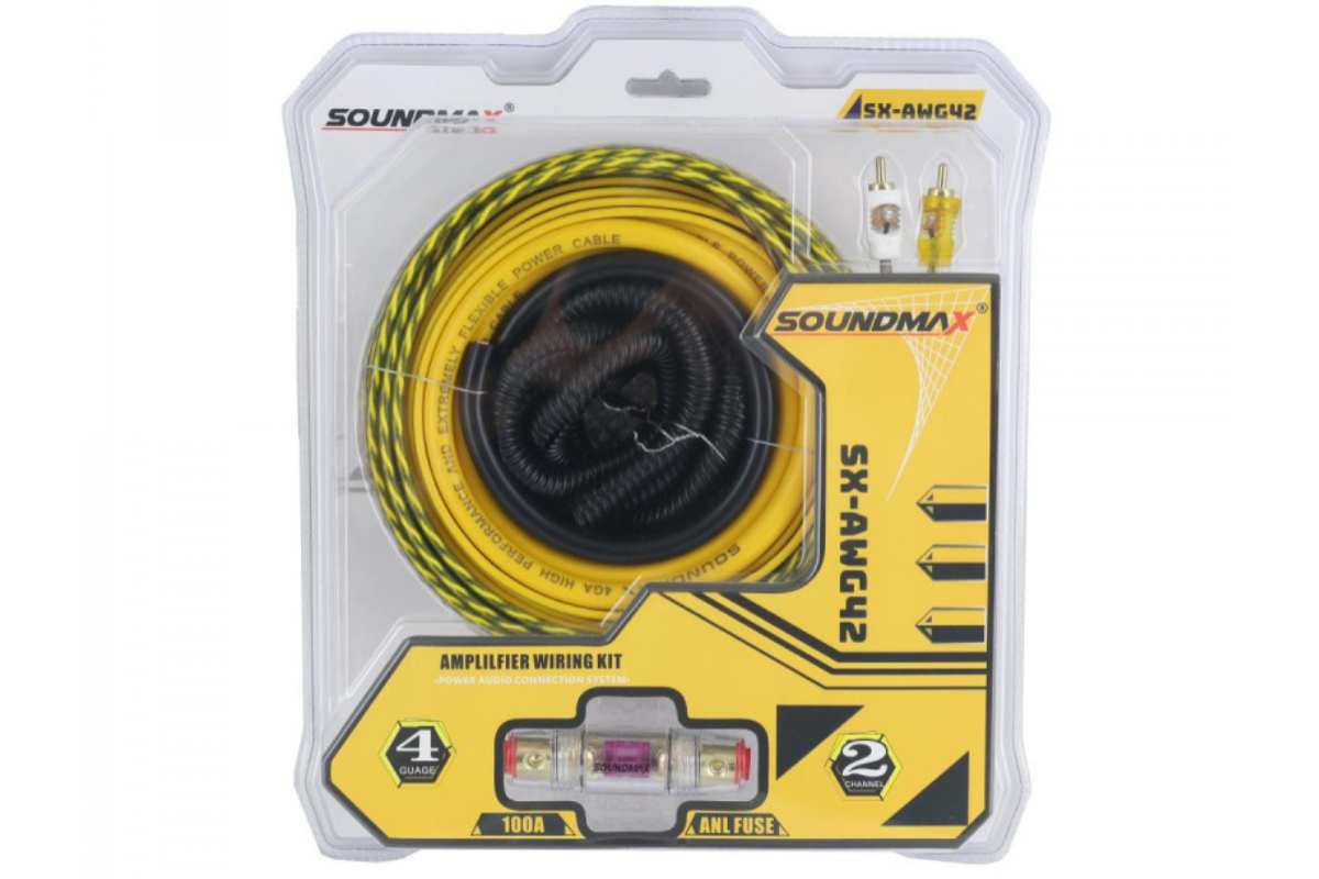 Le Soundmax SX-AWG42 est le choix idéal pour une alimentation fiable, une faible perte de signal et un flux audio optimal, de la batterie à l'amplificateur.